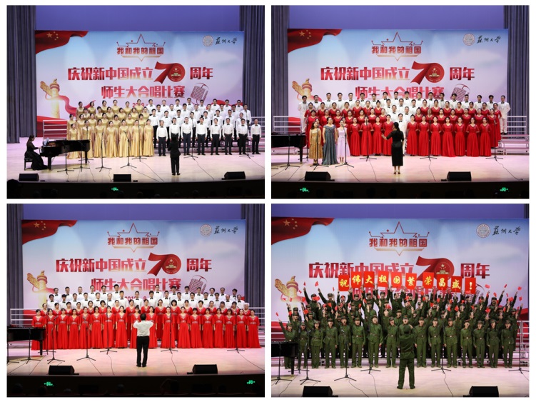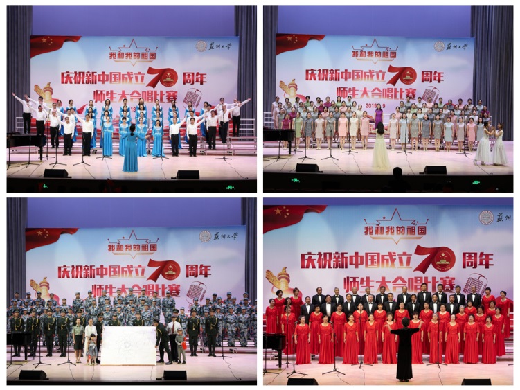 为热烈庆祝新中国成立70周年,热情讴歌70年来的光辉历程和伟大成就,激发广大党员干部、教职员工和大学生担当作为新时代、立足岗位作贡献的奋斗热情,结合“不忘初心、牢记使命”主题教育,9月22日,苏州大学“我和我的祖国”庆祝新中国成立70周年师生大合唱比赛在恩玲艺术中心精彩上演。