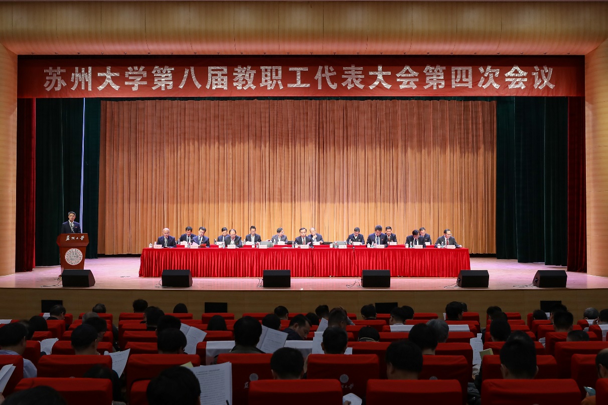 4月12日—13日,苏州大学第八届教职工代表大会第四次会议在天赐庄校区本部存菊堂召开。教代会全体代表出席了会议,特邀代表、列席代表出席了预备会议和第一次全体大会。大会由校党委副书记邓敏主持。