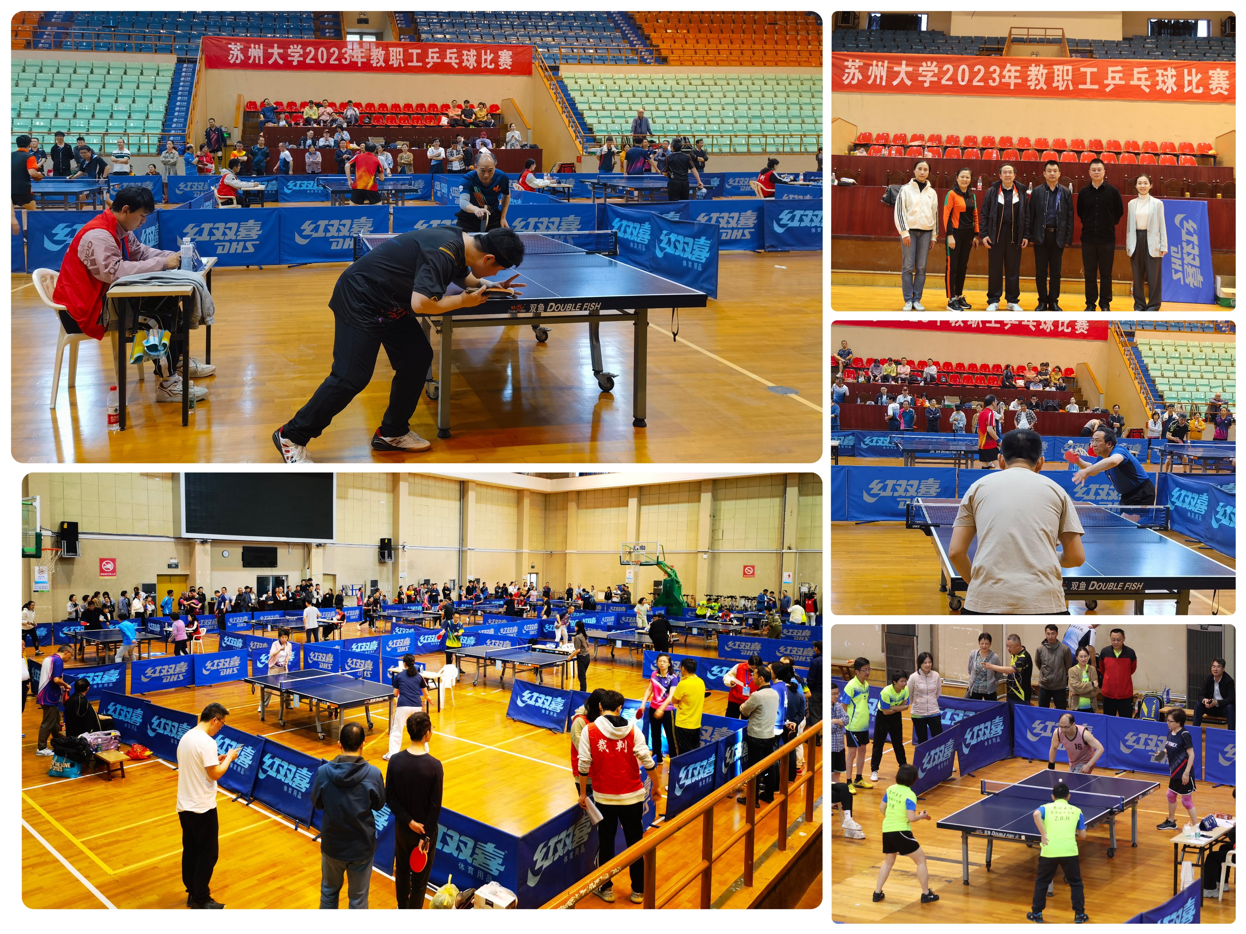 万物复苏,正是踔厉奋发的时节,为进一步推进学校群众体育活动,丰富校园文化生活,增强教职工体质,激发昂扬向上的教职工文化,4月22日,苏州大学举办了2023年教职工乒乓球比赛。本次赛事由苏州大学工会主办,教职工乒乓球协会承办,体育学院分工会协办。乒乓球比赛有着良好的群众基础,教职工积极性较高,共有28家分工会组队参加。