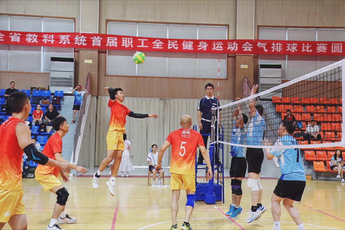 男排比赛中,队员们一路过关斩将,用酣畅淋漓的胜利完美体现了勇往直前、舍我其谁的体育精神,充分展现了苏州教育系统教职工昂扬向上、拼搏进取的精神风貌。男队高奏凯歌,女队也不甘落后。队员们团结一心,以如虹的气势捧得奖杯,完美阐释了顽强拼搏、愈挫愈勇的精神。