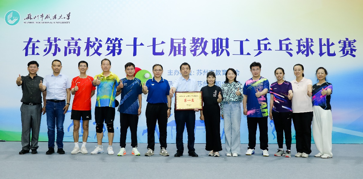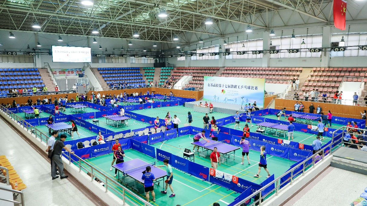 5月26日,在苏高校第十七届教职工乒乓球团体赛在苏州市职业大学体育馆举行。本次赛事由苏州市教育工会主办、苏州市职业大学承办,在苏高校的16支代表队共128名运动员参加,苏州大学代表队顽强拼搏,勇夺第一,第十七次捧起冠军奖杯!