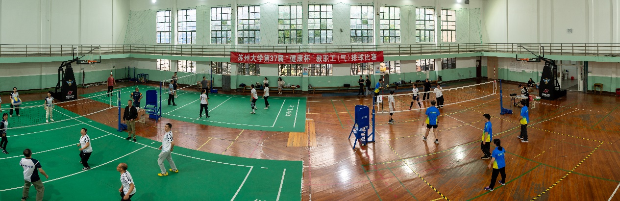 10月9日至17日,苏州大学第37届“健康杯”教工气排球赛在北校区体育馆圆满举行,比赛由校工会主办,教工排球协会承办。来自全校各分工会的25支代表队,近300名教工参加比赛。历时八天,经过80余场比赛的激烈角逐,最终体育学院荣获冠军,东吴学院、机关与直属单位代表队分获亚军和季军,苏州医学院、商学院、电子信息学院、后勤基建、政治与公共管理学院代表队获得第四至第八名。