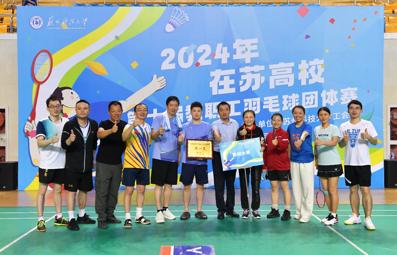 10月18日,由苏州市教育工会主办、苏州科技大学承办的在苏高校第十届教职工羽毛球团体赛顺利举行,来自在苏高校的14支代表队、160余名教职工运动员参赛。我校教职工凭借默契的团队配合、过硬的球技和顽强拼搏的精神,以出色的表现勇夺冠军。