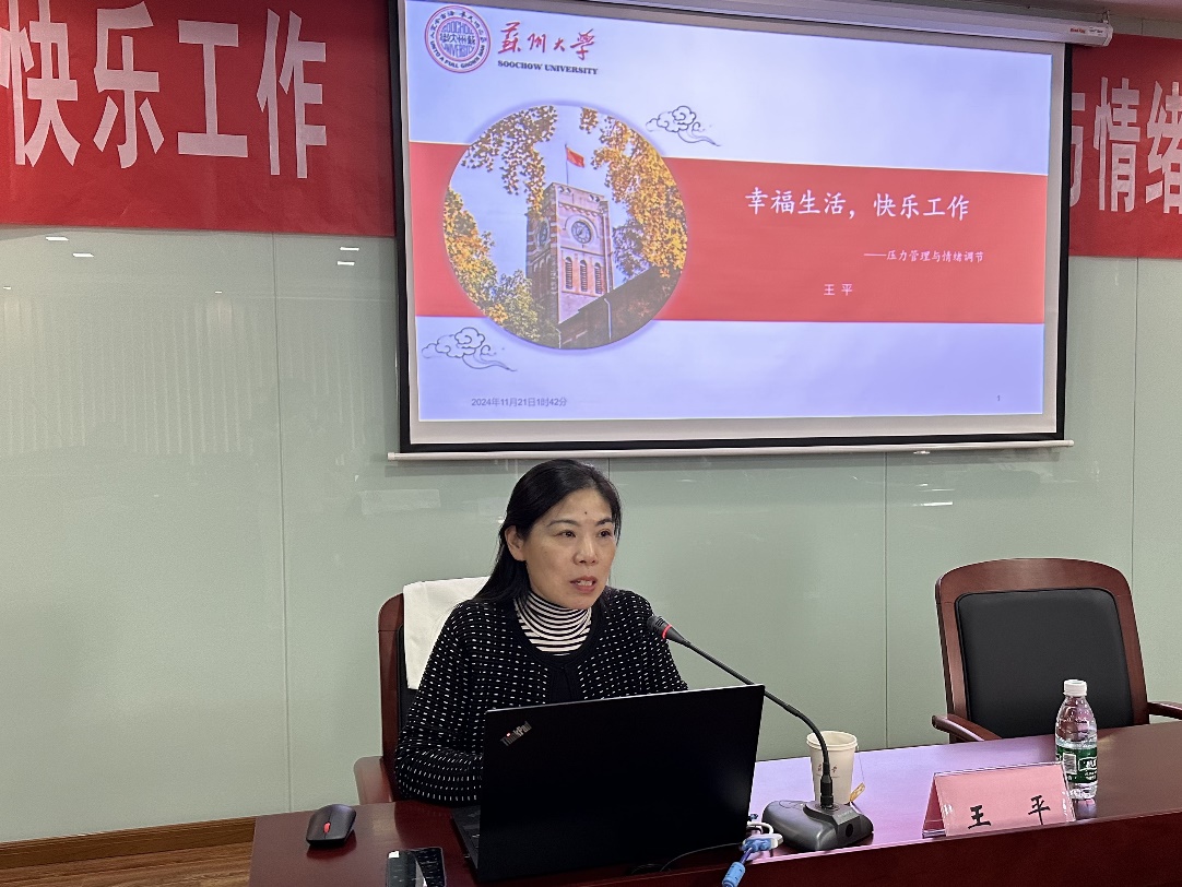 随后,支部党员认真聆听了江苏省社会心理学会理事、大学生心理健康教育研究中心王平副教授所作的“快乐工作 幸福生活——教师压力管理与情绪调节”专题心理健康讲座。