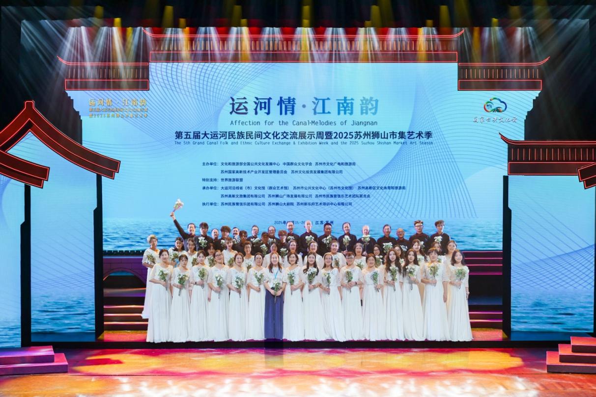 悠悠运河情,丝丝江南韵。10月15日晚,苏州狮山大剧院灯火璀璨、人流如织,“运河情·江南韵”第五届大运河民族民间文化交流展示周暨2025苏州狮山市集艺术季正式拉开帷幕。世界旅游联盟主席张旭,中国群众文化学会会长李宏,文化和旅游部全国公共文化发展中心副主任罗云川,苏州市人民政府副市长季晶,苏州高新区党工委书记俞愉,文化和旅游部公共服务司旅游公共服务处、江苏省文化和旅游厅公共服务处以及来自大运河沿线的北京、天津、河北、山东、河南、安徽、江苏、浙江等八个省市文化馆的负责同志出席活动,与近千名观众一同观看开幕式演出《永远的运河》。