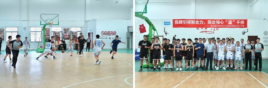 以球会友,奠定良好合作基础。活动期间,双方共同组织了一场篮球友谊赛。赛场上,参赛师生与企业员工们精神抖擞,攻防转换迅捷,配合默契,充分展现了双方队伍勇于拼搏,团结奋进的精神风貌。