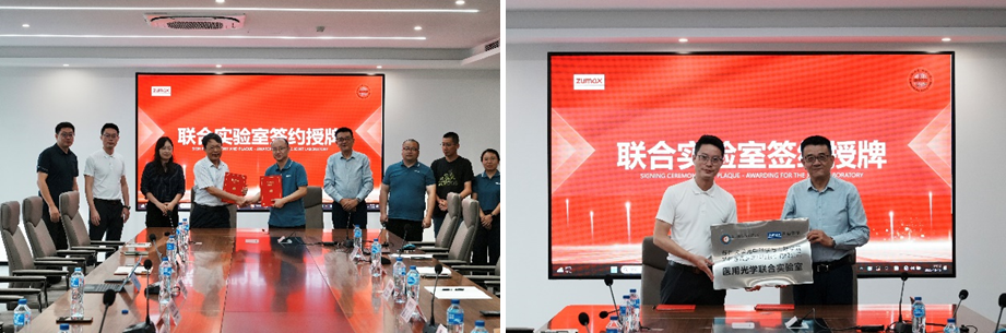 合作共赢,共建产学研融合新高地。活动伊始,李向东致欢迎辞。苏州速迈医学科技股份有限公司作为专注于医用光学产品研发与制造的高新技术企业,多年来在精密光学、机械设计和光学产品临床应用方面拥有深厚的产业积淀。会上,双方共同成立“医用光学联合实验室”。该实验室将重点围绕先进光学成像等方向开展联合攻关,致力于实现高端医疗光学设备的关键技术突破与成果转化。
