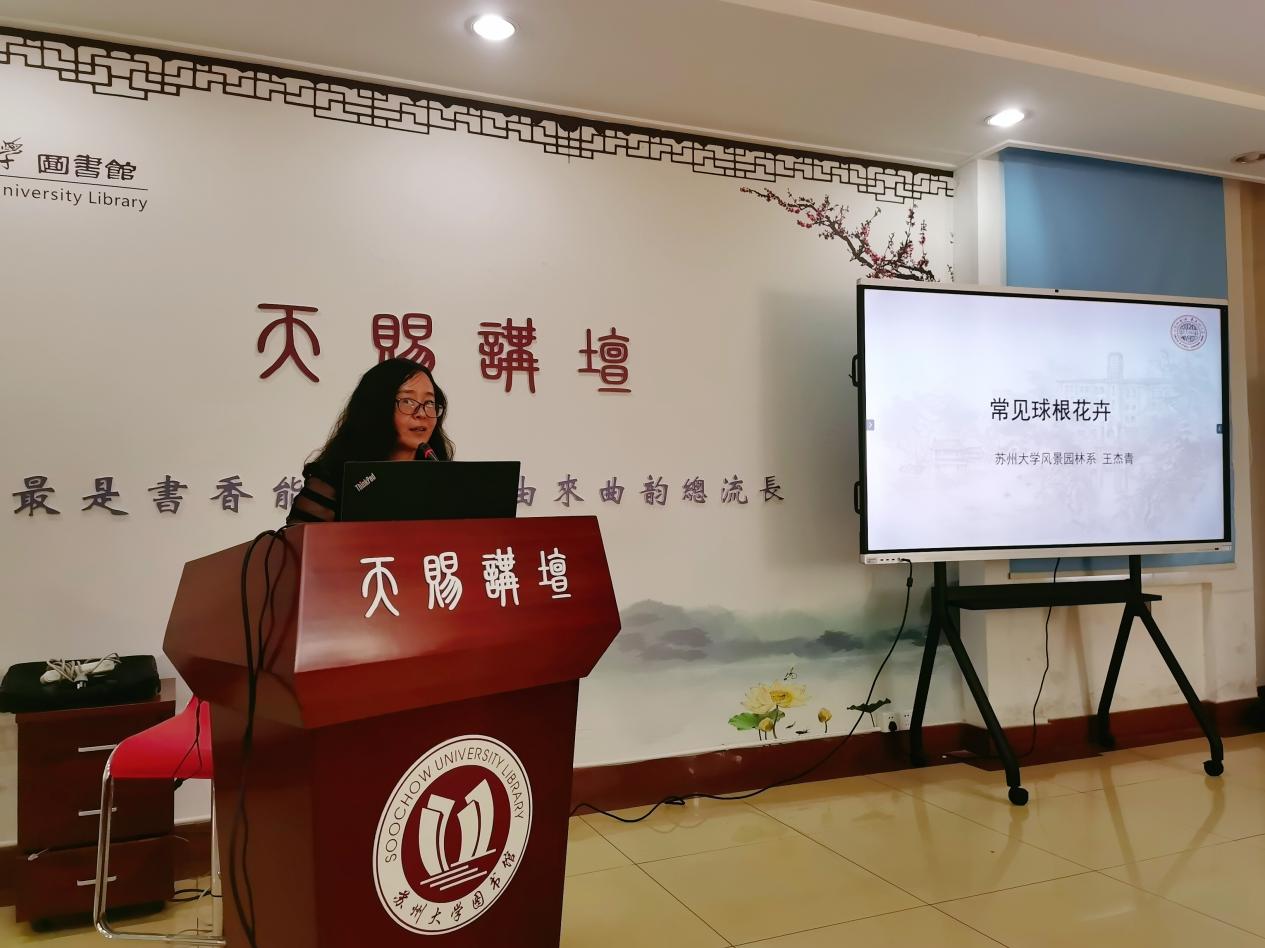 本次活动分三个环节,首先由苏州大学风景园林系的王杰青老师分享了《常见球根花卉》的相关内容,大家认真听讲,积极参与提问互动。