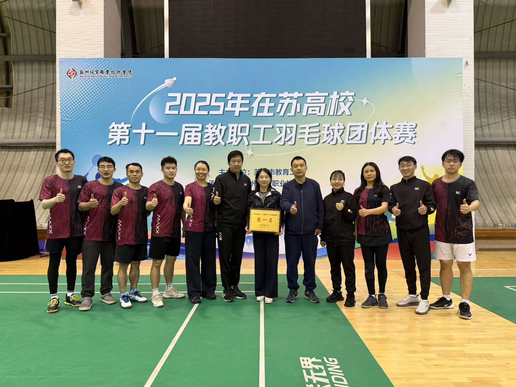 11月7日,由苏州市教育工会主办、苏州经贸职业技术学院承办的在苏高校第十一届教职工羽毛球团体赛圆满落幕。我校教职工羽毛球队在领队顾志勇、教练蒋青芳的带领下,团结协作、奋勇拼搏,成功卫冕团体冠军,充分展现了我校教职工积极进取、昂扬向上的精神风貌。