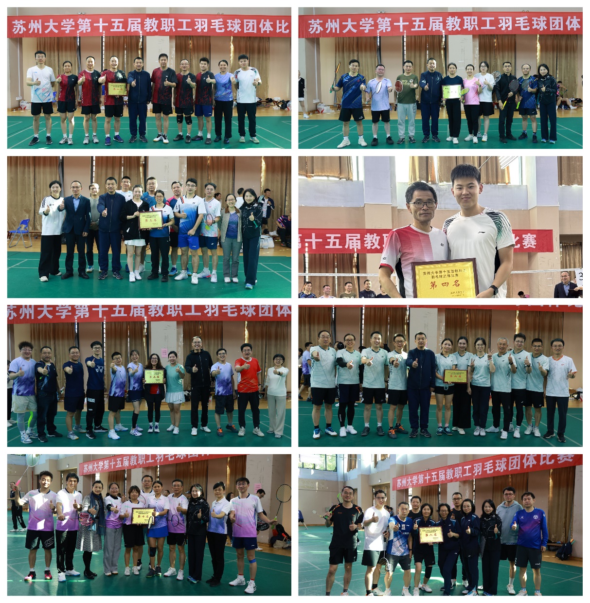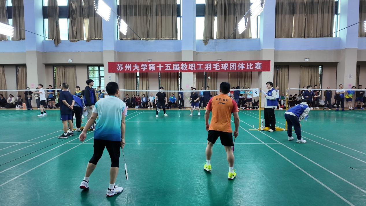 苏州大学第十五届教职工羽毛球团体赛在独墅湖校区公体楼羽毛球馆成功举办。本次赛事由校工会主办、教工羽毛球协会承办,为期两天,全校31支代表队近400名教职工齐聚一堂,同场竞技,尽展体育风采。