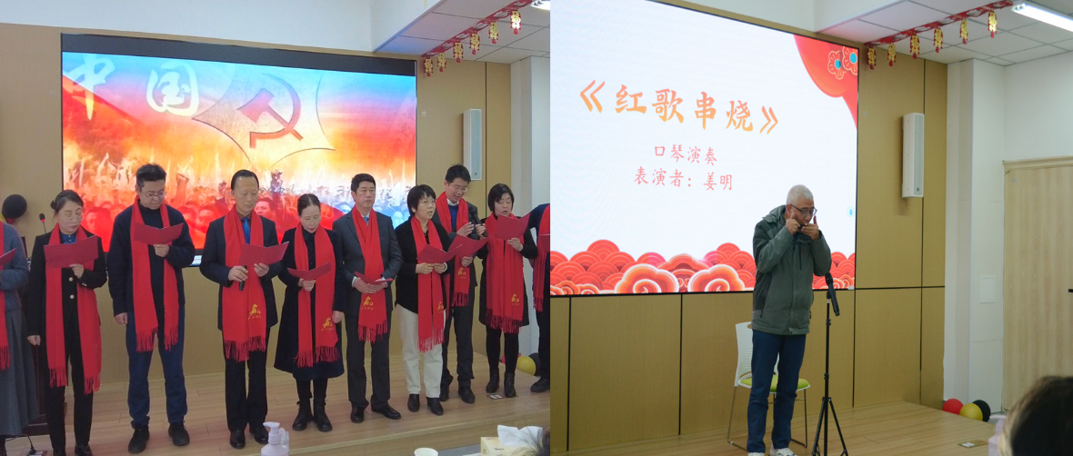 中国近现代史纲要教研室带来的诗朗诵《青春中国》,字里行间饱含赤子情怀;姜明老师的口琴独奏《红歌串烧》,唤起共同的红色记忆。