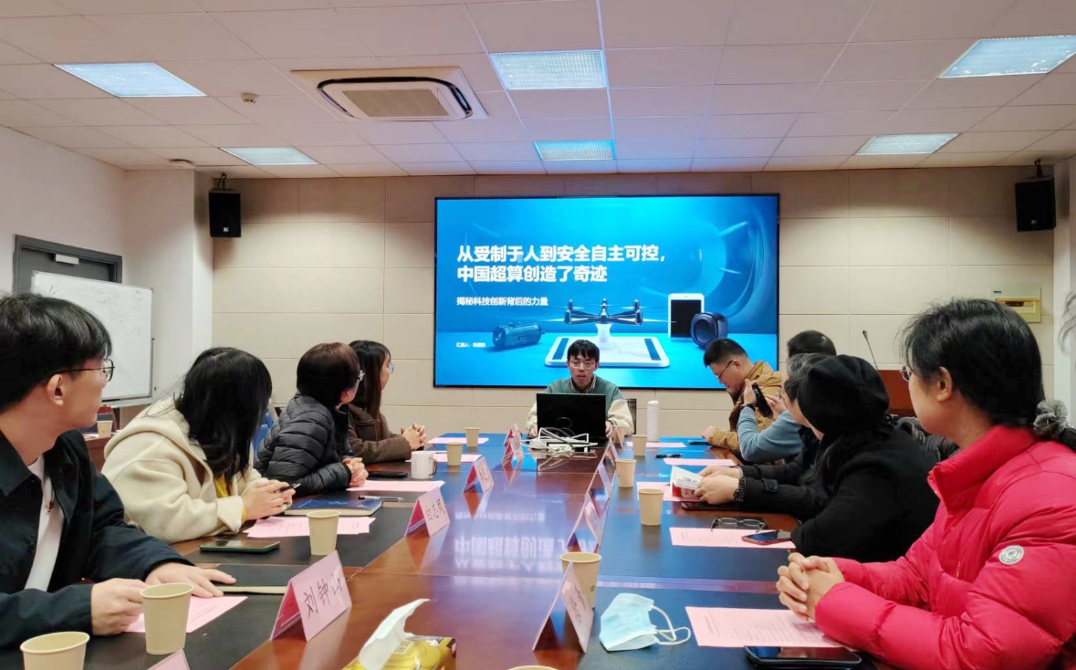 随后,计算机科学与技术学院研究生八支部党员姚星凯分享了《科技报国 中国超算》的主题报告。他从超级计算机的发展历程、关键节点、高速发展与多元应用等方面进行了详细介绍。他提到了“十三五”国家重点研发计划设立的“高性能计算”重点专项,以及“神威·太湖之光”超级计算机的研制过程。中国超级计算机的崛起不仅改变了技术格局,更开启了科学创新的新纪元。