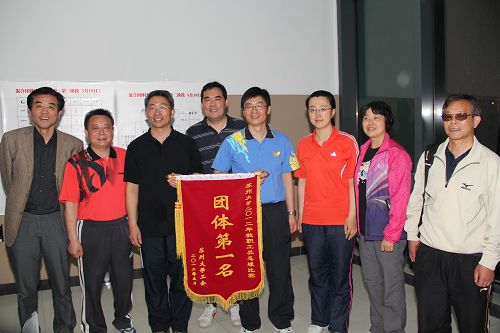 2012年5月19日我校教工乒乓球比赛在独墅湖校区公体楼举行,共有33支球队参加了混合团体赛。机关、群团与直属单位、机电工程学院、社会学院、计算机科学与技术学院、医学部等6个单位组成2支球队参赛,是历年来参赛队伍最多、竟技水平最高的一次盛会。比赛获得前八名的是:第一名外国语学院;第二名群团与直属单位1队;第三名计算机科学与技术学院1队;第四名机电工程学院1队;第五名机关1队;第六名计算机科学与技术学院2队;第七名机关2队;第八名体育学院。