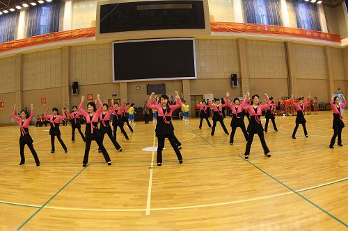 经过一轮走场彩排后比赛正式开始,全校340余名教工选手齐聚一堂一展舞姿。纵观整场比赛,各参赛队的舞蹈风格多元、主题多样,融入了国标舞、健身舞、民族舞等多种元素,亮丽的服装和恰如其分的装饰,曼妙的舞姿和多变的队形、饱满的精神和欢快的气氛,舞出了健康时尚,也舞出了专业范儿。体育学院代表队将华尔兹和恰恰舞曲无缝对接,精巧的队形编排,或舒展大方、或欢快动感的舞姿,把优雅庄重和热情奔放都演绎的淋漓尽致;后勤管理处代表队新颖、快速、多样的队形变化让人目不暇接,节奏感强劲的舞蹈串烧魅力四射;艺术学院代表队身着自行设计制作的小黄人卡通服装,以可爱的造型和俏皮的舞蹈动作萌翻了全场;图书馆代表队一袭鲜亮的藏族服装十分抢眼,悠扬婉转的歌声伴着柔韧优美的舞姿,在场内掀起了最炫民族风。