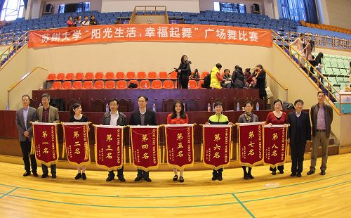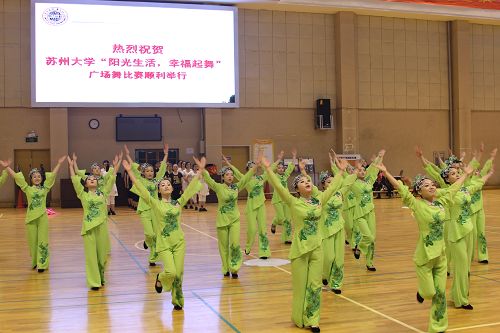 3月26日下午,苏州大学“阳光生活,幸福起舞”广场舞比赛在东校区体育馆举行。本次比赛由校工会主办、体育学院协办,全校17个分工会组队参加了比赛。校党委副书记、副校长江涌,校长助理王家宏以及各参赛单位的党政领导、工会主席出席并观摩了比赛。