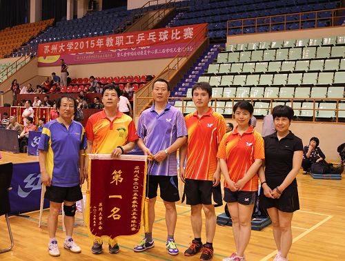 2015年苏州大学教职工乒乓球比赛,于5月16日、17日在东区体育馆顺利举行。共有34支球队报名参加了混合团体比赛,其中机关、群团、王健法学院、机电工程学院、计算机科学与技术学院、材料与化学化工学部和纺织与服装工程学院都组成2个队参加角逐。院系领导重视推动和组织群众性体育活动,以及教职工乒乓球爱好者的积极参与,为乒乓球活动的开展营造了良好的氛围,使之成为教师健身的热门项目。
