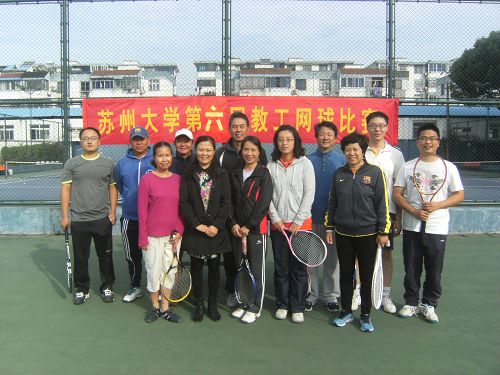 2015年10月31日上午,苏州大学第六届教职工网球比赛在东校区网球场成功举办。本次比赛由苏州大学工会主办,苏州大学教工网球协会承办。比赛吸引到来自7个学院的11名教师参加。