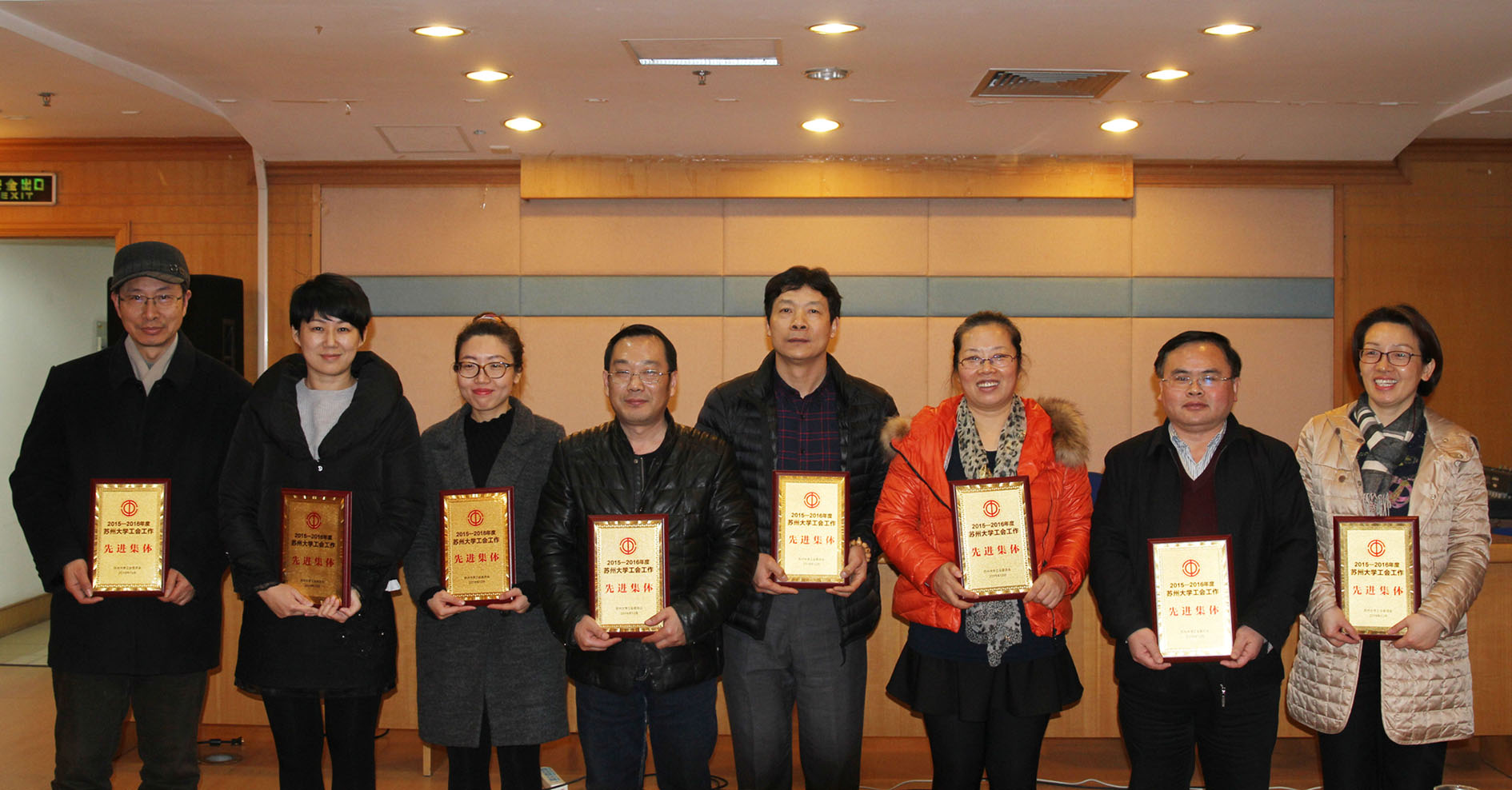随后,王安列主席宣读了《关于表彰2015-2016年度苏州大学工会工作先进集体、优秀工会积极分子”的通知》,政治与公共管理学院等9个分工会获评“工会工作先进集体”,高群等25位同志获“优秀工会积极分子”荣誉称号。校工会主席王安列及副主席冒维东、陈洁分别为获奖集体和个人颁发了奖牌及荣誉证书。
