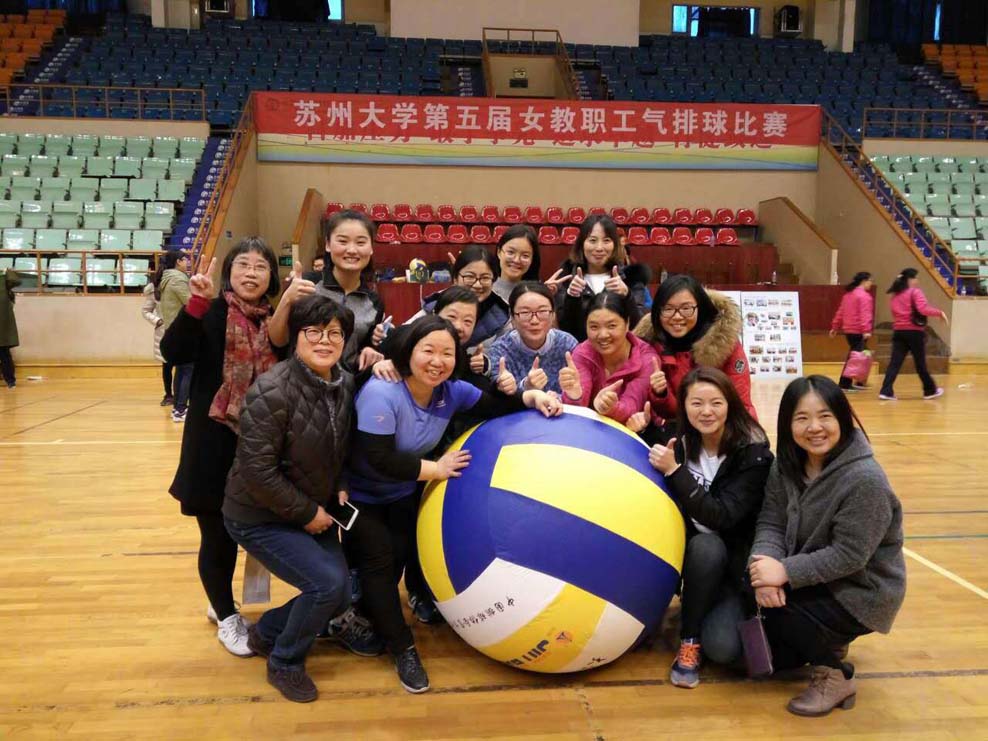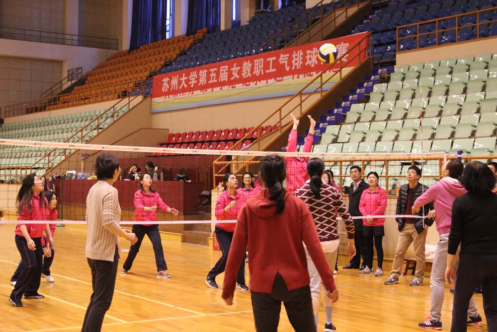 阳春三月,苏州大学校园内嫩柳吐绿,春花初绽。3月8日下午,在东校区体育馆里,由校工会主办、体育学院协办的第五届女教职工气排球比赛如期举行,揭开了一年一度庆祝三八节系列活动的序幕。