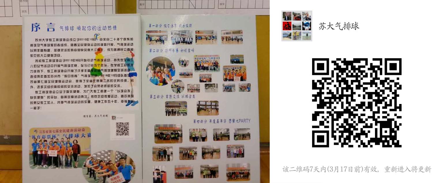 本次比赛也出现了许多亮点。特别是教工排球协会加大了对气排球的宣传力度,制作展板利用图文并茂的形式展示了他们去年的主要活动。展板包括序言和四组活动照片,并公布了微信二维码。经过一年来的努力,气排球运动已经成为教工排球协会的主要活动项目。在“以球会友,快乐健身”的宗旨指导下,他们每周定期进行两次集体活动,活动内容包括技术训练和比赛两部分,通过技术训练提高了会员的气排球基本功,而通过比赛不仅提高了会员老师的配合意识,还增进了各位教师间的交流。适中的运动量又符合了老师们运动健身的需要,许多老师都表示通过一段时间的活动,使他们的体质都有了很大改善。