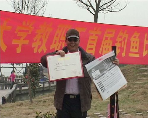 比赛共进行了3个小时,分上下两场,考虑到钓鱼运动的特殊性,中场时进行了交换场地,以求公正公平。11时45分,比赛结束,评委组分两路为各位选手计鱼数,称重量。大家兴奋的观看战果:计算机科学与技术学院的卢维亮老师以27尾的成绩兼获鱼尾数和总重量第一名,体育学院的孙金贤老师仅以1尾之差屈居第二,计算机科学与技术学院的查伟忠老师以21尾居第三,由此计算机科学与技术学院也获得了团体第一的好成绩。大家纷纷赞叹三位高手的钓技,争相合影留念。最后,各位选手们慷慨分送战利品,无论各自成绩如何,大家都踏着湖畔田间的春色满载而归。
