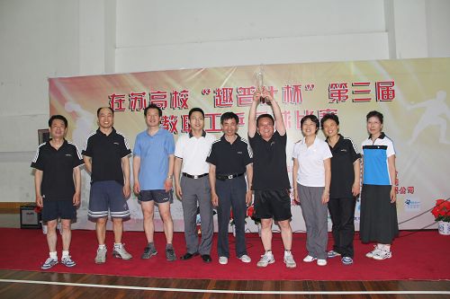 第三届在苏高校教职工乒乓球比赛于5月21日在苏州工业职业技术学院体育馆举行,我校教职工乒乓球代表队喜夺三连冠。