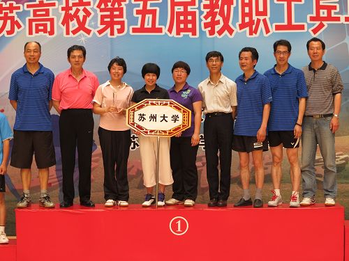 5月25日,第五届在苏高校教工乒乓球比赛在苏州科技学院石湖校区体育馆举行,我校教工乒乓球队奋力拼搏,蝉联五连冠。