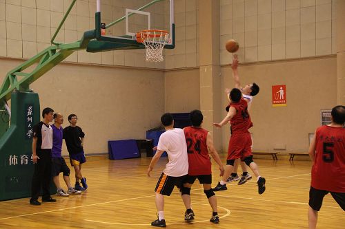 2013年6月1日在美国NBA季后赛比赛正酣之时,苏州大学全体教工篮球爱好者迎来了自己的篮球节日—全校教工“三人制”篮球赛。6月1日上午8:00整,比赛在东区体育馆室内篮球场准时开战,揭幕战由上届冠军体育2队对阵数学学院。经过78场激烈的比赛和争夺,最终体育学院2队技高一筹,卫冕成功;机电学院1队获得亚军,他们充满活力和出众的球技令人赞叹。