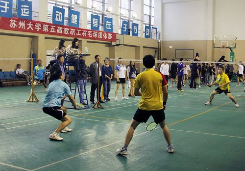 由校工会主办,校教工羽毛球协会承办、体育学院协办的苏州大学第五届教职工羽毛球团体比赛,于11月9日在东校区体育馆正式拉开帷幕。大赛吸引了全校28个分工会30支代表队,近300多名教职工参赛,参赛单位和参赛人数之多创历届之最。
