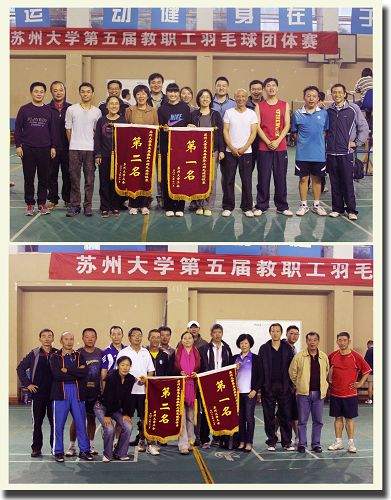 近年来,羽毛球运动在我校不断兴盛,深受广大教职工喜爱,整体竞技水平也有了较大提高,在不久前结束的“第二届在苏高校教职工羽毛球比赛”中,我校教工羽毛球代表队就摘得桂冠。为使更多的羽毛球爱好者能上场参赛,本着重在参与的原则,校羽协对本届比赛的赛制进行了调整,分四个组别,按男单、男双、混双、女单、男双的顺序进行五轮比赛。体育学院也派出了由23名羽毛球专项学生组成的裁判组,在总裁判长施志社老师的带领下,出色完成了裁判任务,保证了比赛的顺利进行。
