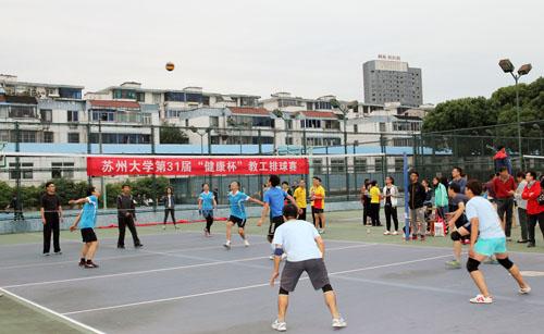 作为苏州大学教工传统体育比赛项目,教工排球比赛一直得到广大教职工的支持和积极参与。本届比赛不仅是历届次中整体水平较高的一届,其水平也属同类高校一流水准。其中传承以往苏大教工排球赛的经典之笔,男女教职工同场竞技在全国高校范围之内也非常罕见,难怪苏大人每每遇到这样的赛事都津津乐道、乐此不疲。同时,第31届教工排球赛正是在里约奥运会中国女排惊天大逆转夺冠之后的一个月内举行,“女排精神”不仅激励了全国人民实现中国梦的斗志,也大大调动了参与本届排球赛教职工的比赛热情,尤其明显的是在原有“见新人、会老友、竞球技、比干劲、增友谊”的基础上,又加入了“议女排”的新内容,校园排球赛也为校园文化融入了更鲜活的元素。