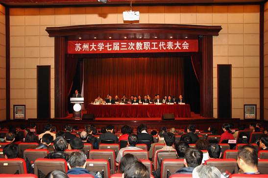 大会指出,学校教代会作为中国特色现代大学制度的重要组成部分,是教职工行使民主权利,参与学校民主管理,开展民主监督的基本形式。本次教代会内容丰富,议题涉及学校重大改革设想和广大教职工切身利益,并首次根据《苏州大学教职工代表大会实施办法》,向大会提交了需要投票表决通过的事项,充分体现了教代会制度在学校事业发展中的地位和作用日益凸显。全校上下要高度重视和切实加强各级教代会建设,充分发挥其在推进依法科学民主决策、维护教职工合法权益、协调各种利益关系、促进校园和谐稳定、提升办学水平等工作中的重要作用,团结带领广大教职工为推进学校事业科学发展作出贡献。