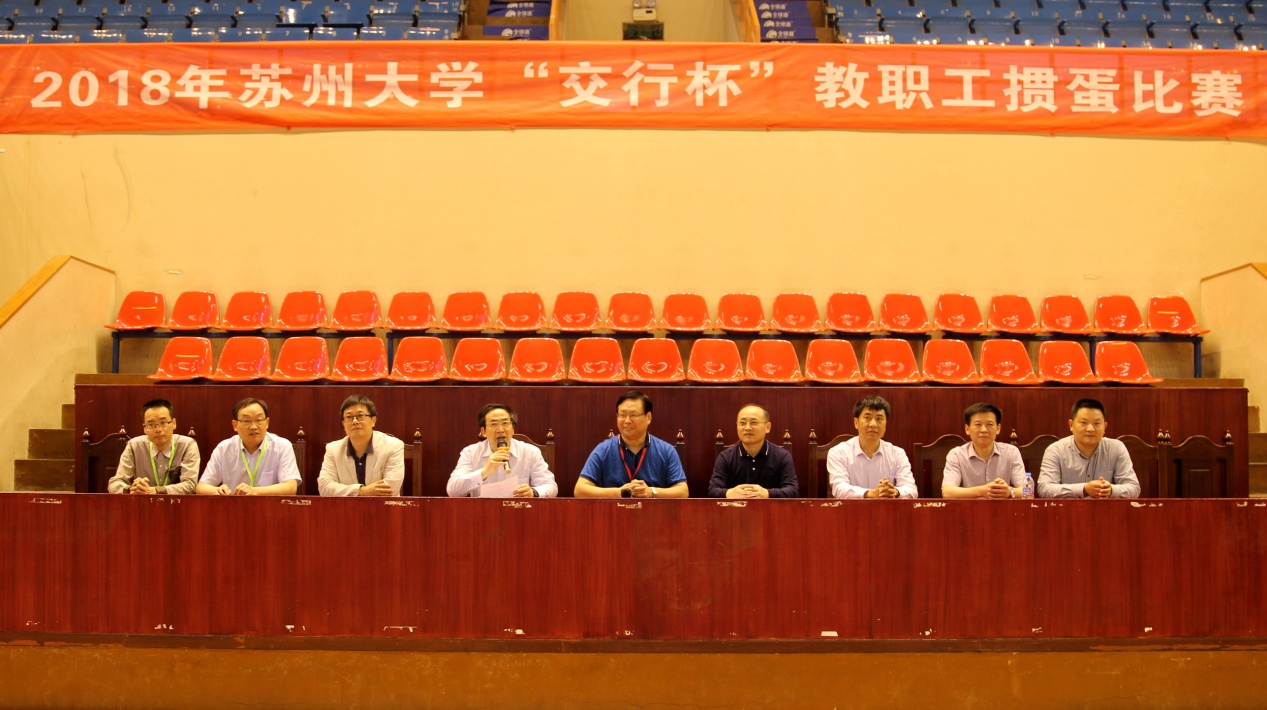 为了丰富教职工业余文化生活,倡导健康的娱乐活动,推广开展一些群众基础广泛、健康益智的棋牌类智力运动比赛项目,促进和谐校园建设,512日苏州大学“交行杯”教职工掼蛋比赛在东区体育馆开赛。校党委常委、总会计师周高,交通银行苏州分行副行长张二男,校工会主席王永山,体育学院党委书记杨清、院长王国祥,后勤管理处党委书记仇玉山,校工会副主席冒维东出席了开幕式。开幕式由王永山主持。