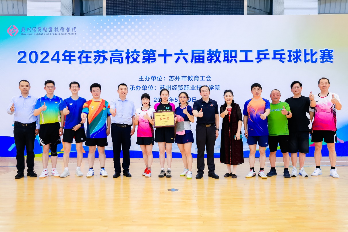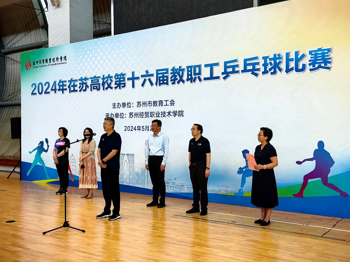 2024年5月29日,由苏州市教育工会主办、苏州经贸职业技术学院承办的在苏高校第十六届教职工乒乓球比赛火热开赛,整个比赛紧张激烈、和谐友好,16支代表队共128名运动员参加了此次比赛,参赛队员和参赛规模再创新高。