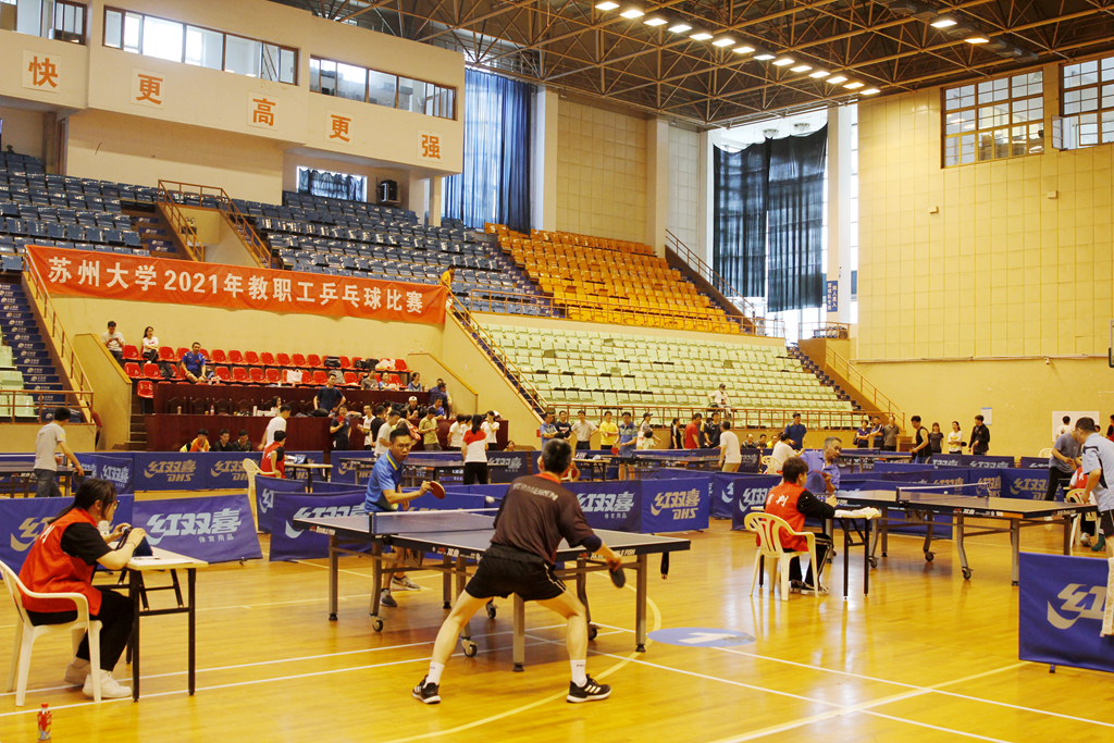 5月9日,苏州大学2021年教职工乒乓球比赛在东区体育馆顺利举办。本次赛事由苏州大学工会主办,教职工乒乓球协会承办,体育学院分工会协办。竞赛项目为男女混合团体赛,共有31家分工会组队报名参加。
