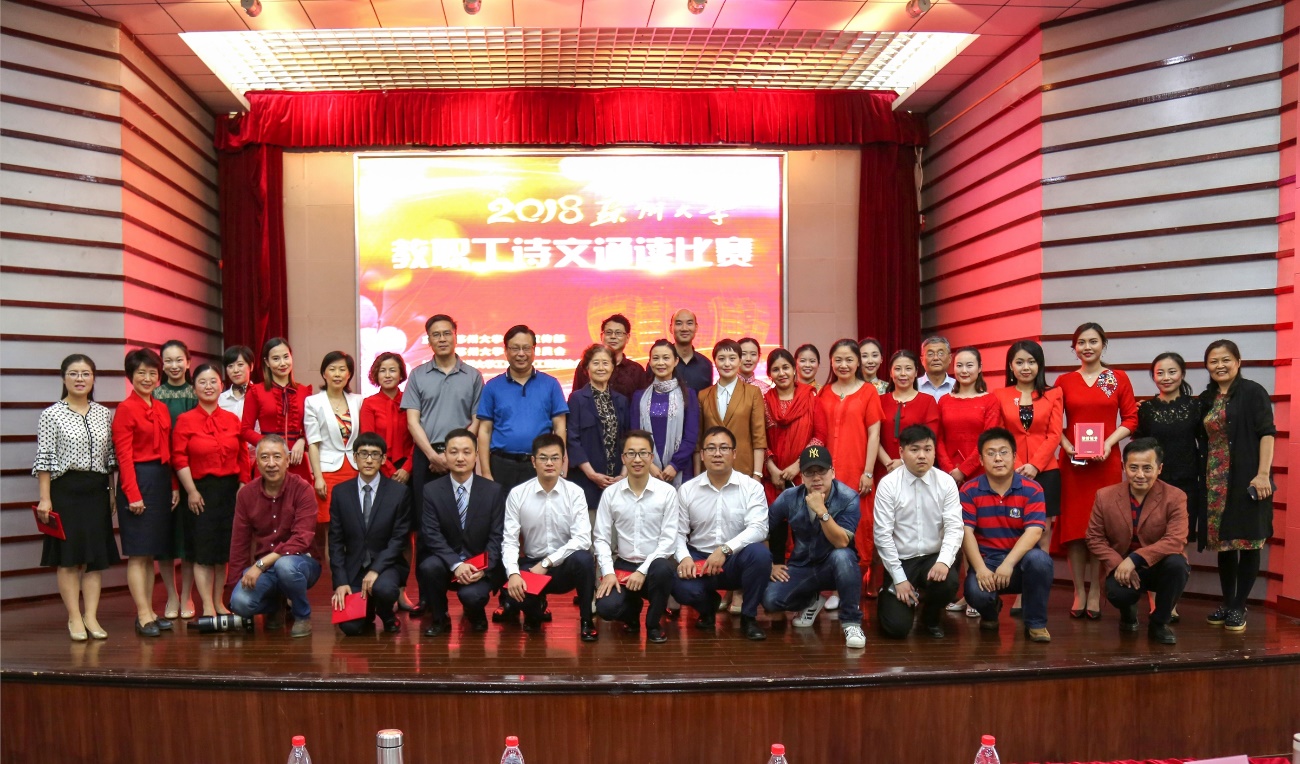 5月23日下午,以“传承民族精神,弘扬传统文化”为主题的2018年苏州大学教职工诗文朗诵比赛在天赐庄校区学术报告厅举行。此次活动由我校党委宣传部、工会委员会主办,工会教职工诵读协会协办。校党委副书记邓敏,党委常委、总会计师周高,党委常委、党委宣传部部长、新闻中心主任陈晓强,工会副主席陈洁,评委老师王家伦、朱秀生、王宁、汪晓媛、祝捷,近50位参赛教职工,相关单位负责人及参赛单位代表出席比赛现场。
