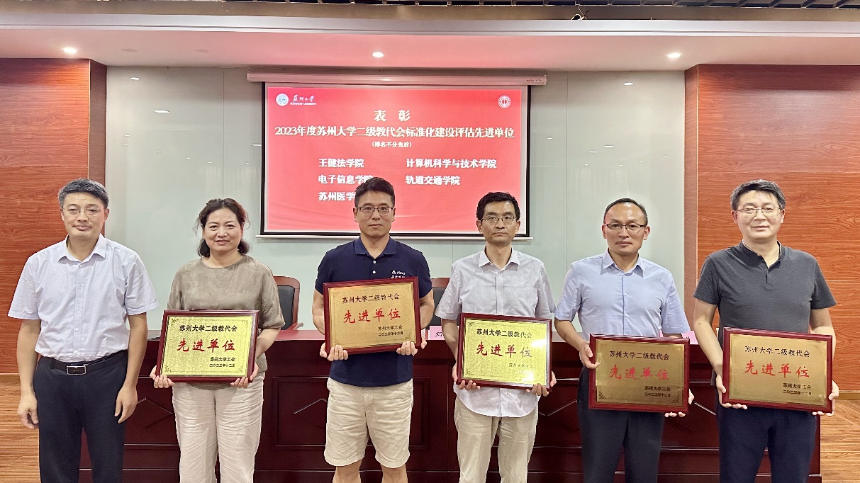 校工会副主席陈洁宣读苏州大学基层工会“教工之家”、二级教代会标准化建设、工会工作先进集体和个人表彰决定。