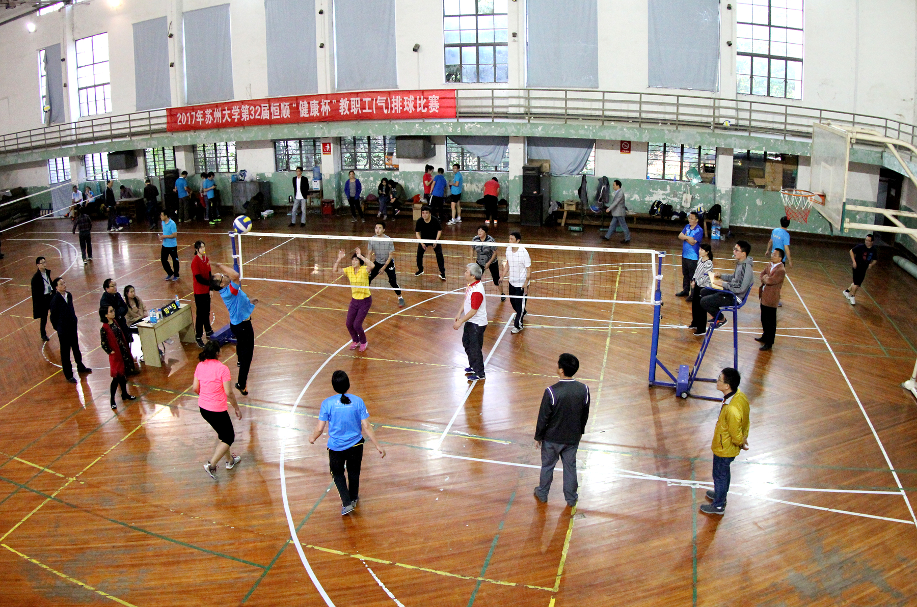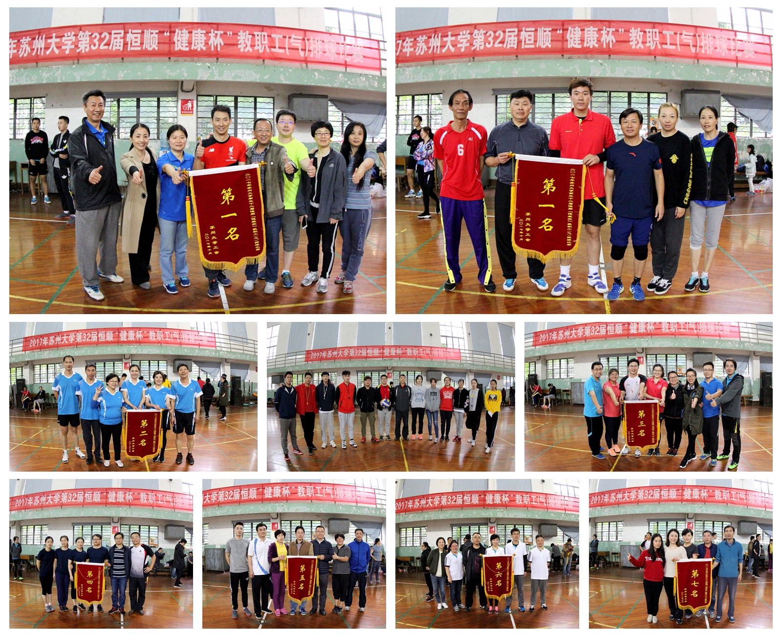 10月29日上午,苏州大学北校区体育馆内不时传来阵阵欢呼声,第32届恒顺“健康杯”教职工(气)排球比赛的终极决战正在紧张地进行。由基础医学队挑战体育学院队。经过激烈鏖战,体育学院队取得胜利,根据比赛规程,两队并列冠军。至此,经过八个比赛日的争夺,我校第32届恒顺“健康杯”教职工(气)排球比赛全部结束,获得前八名的队伍依次是体育学院、基础医学与生物科学学院、机关、沙钢钢铁学院、物理与光电·能源学部、后勤管理处、政治与公共管理学院、社会学院代表队。回顾整个比赛过程,高潮不断,精彩纷呈。通过本次比赛,我校的教工排球赛事取得了如下突破和收获。
